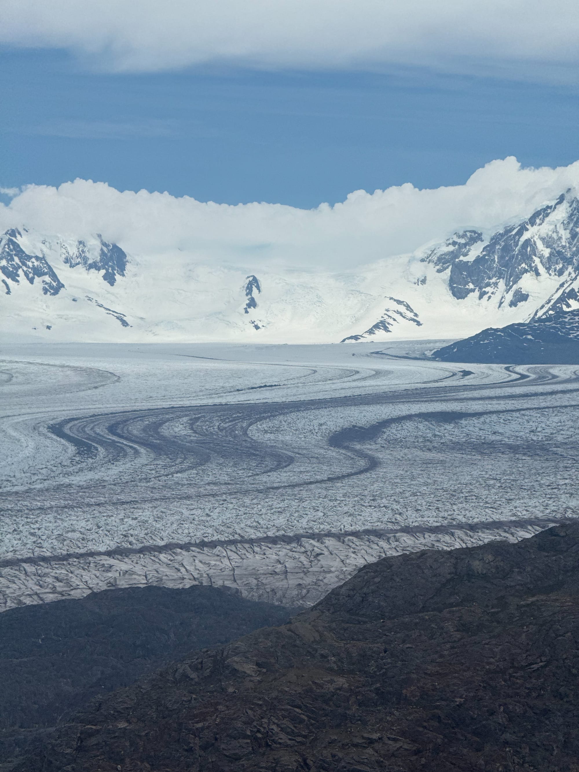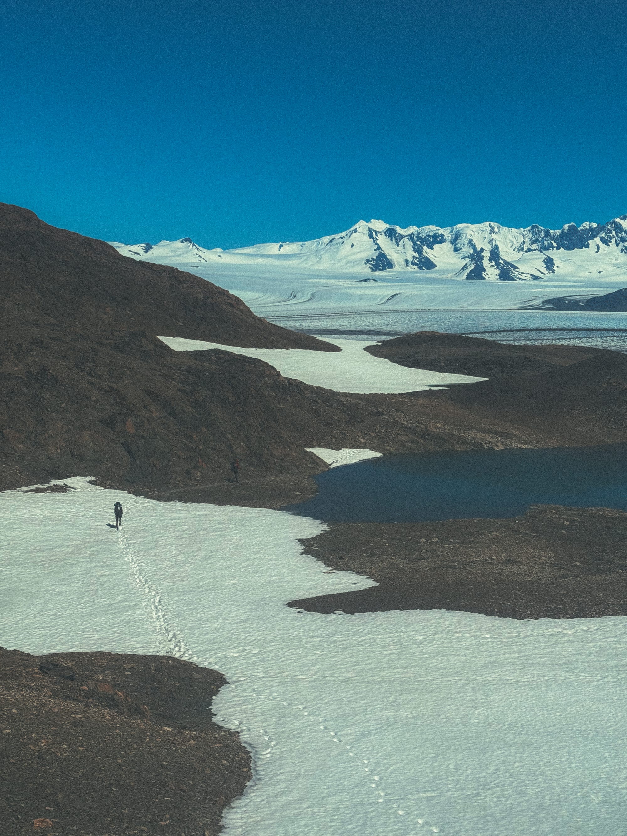 After this, there is a steep (600m elevation gain in 2.5km) section of uphill walking where you reach the Mirador Paso del Viento. Coming over the top of this pass, the view is dominated by the Southern Patagonian Ice Field. The ice field is kilometres wide, filling the entire width of the valley, and runs all the way up and down the valley as far as you can look, spilling over the horizons in both directions. It’s a huge amount of ice to look at, it is truly one of the most unique and amazing things I have ever seen. The rest of the day is spent walking alongside the ice field, where the night 2 camp is in a little protected valley next to a lake.