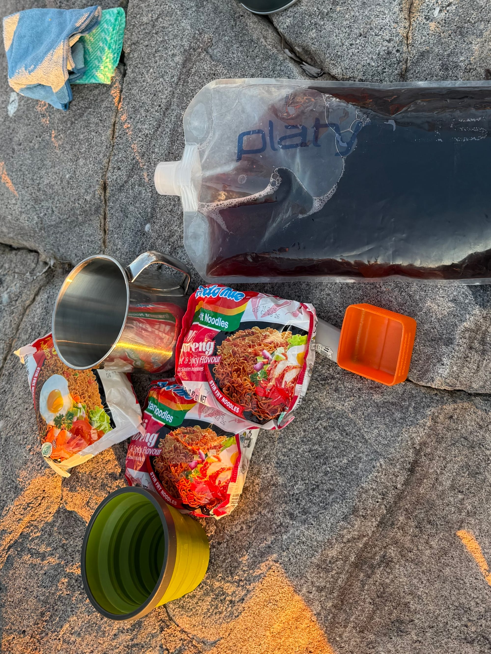 - A couple bottles of wine - decanted into a bladder, there was no regrets having an additional 1.5L to carry, this was a really nice addition to dinner each night.