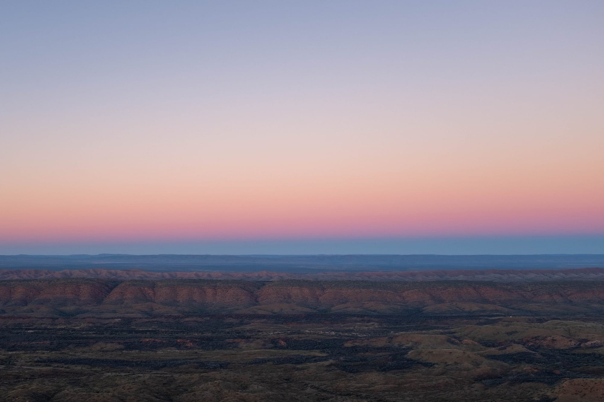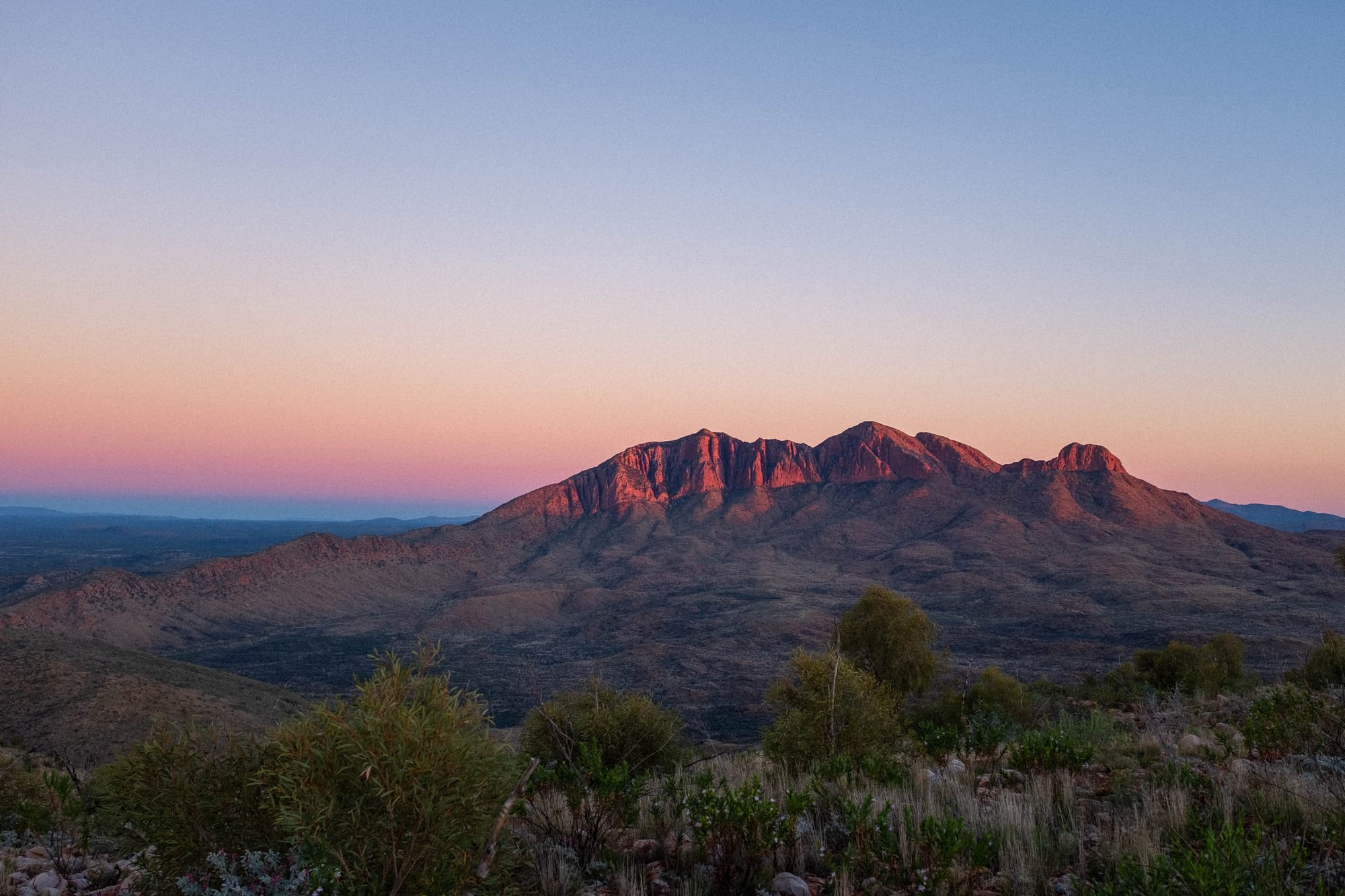 Our walking direction of east (starting in Alice Springs) to west meant that day 13, the final day of the hike, Section 12 of the trail, was climbing to the summit of Mount Sonder. Mount Sonder is the tallest point of the Western MacDonnell Ranges. It is visible on the Larapinta trail from early in the walk, and it cuts quite the figure on the horizon for much of the walk. Typically, on the last day of the trail you wake up before sunrise and do the 7km of walking in the dark and watch the sunrise from the summit.