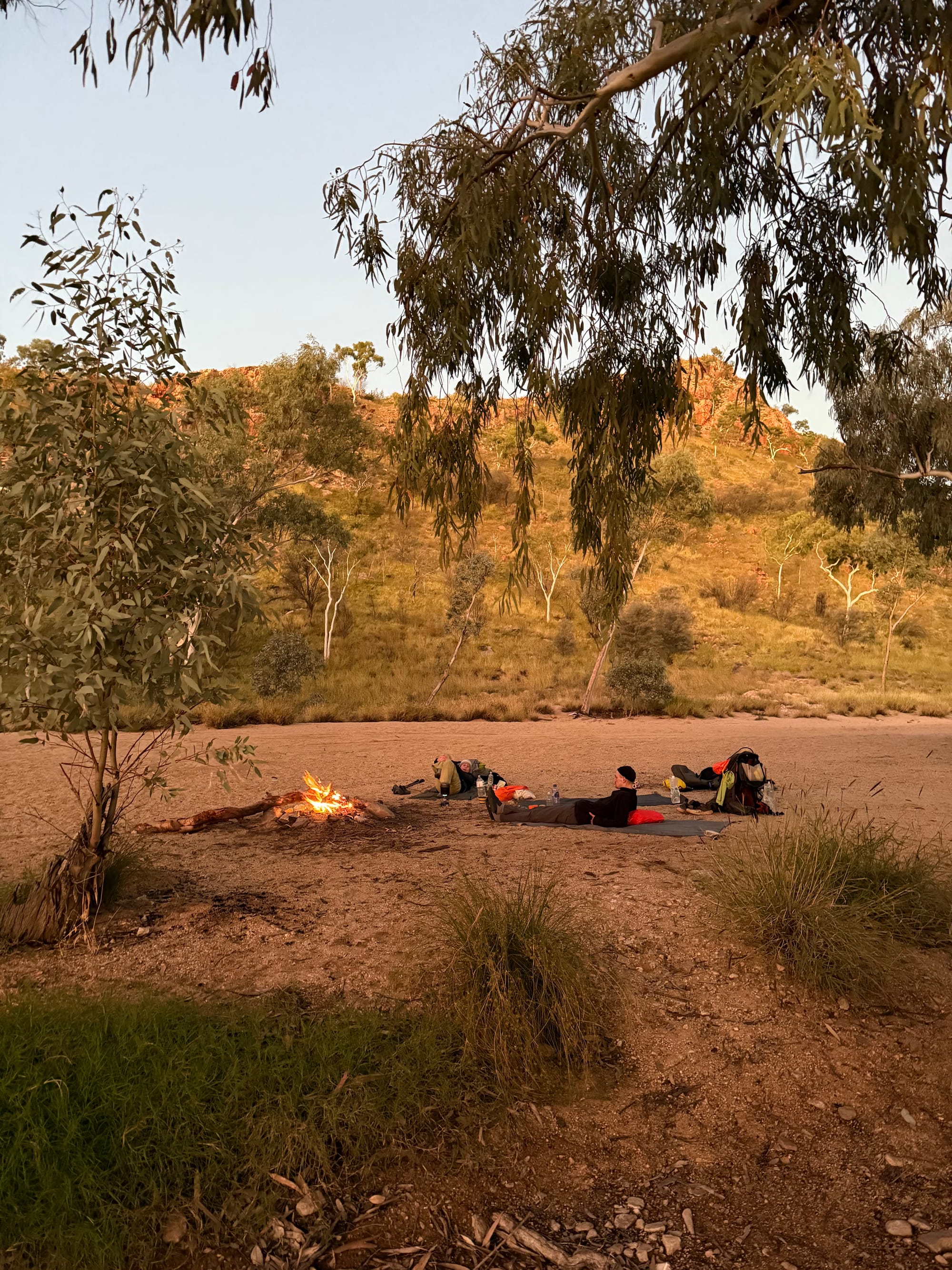 Camp on Day 5 (Birthday Waterhole) was a lovely spot on a big sandy riverbank, next to a waterhole under a big gumtree - quintessential out bush spec. Our spirits were high after a full dry day of walking, and so we decided to cowboy camp. The following all happened whilst I was asleep and so it is based on recount provided by Hugh and Georgia: